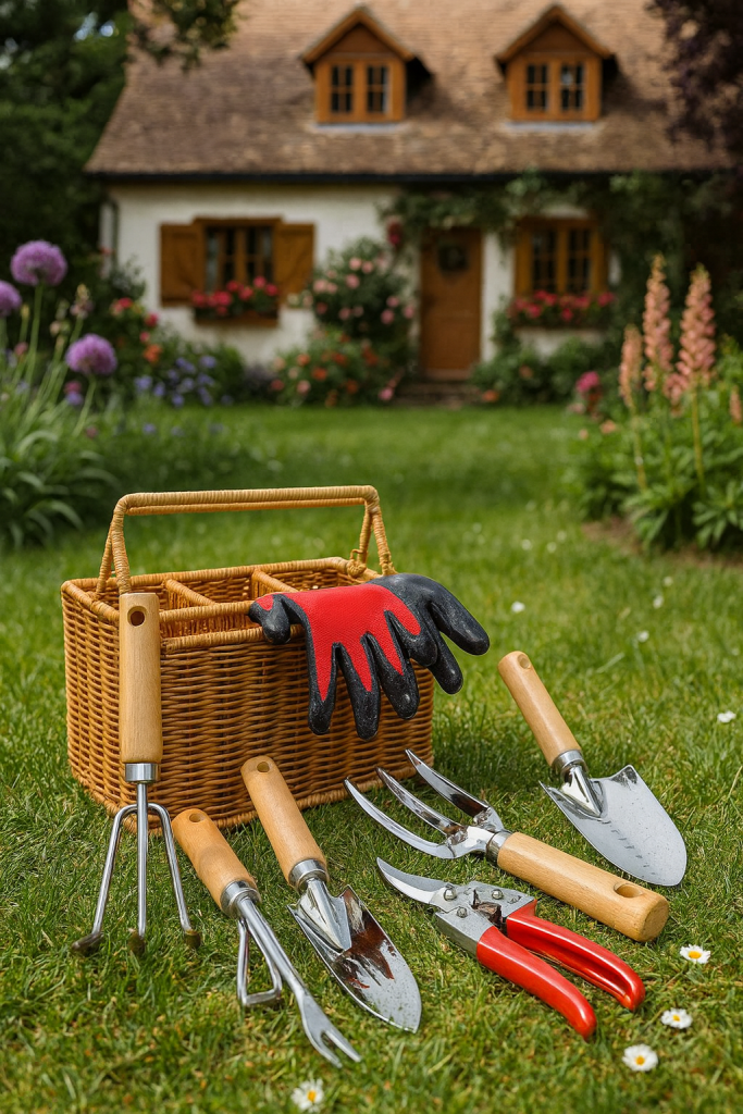 Like something from a sunlit countryside morning, this vintage garden basket and tool set makes tending flowers and harvesting vegetables feel like a simple, beautiful ritual. Perfect for garden lovers and cottage-style outdoor spaces.
